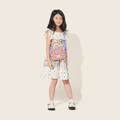 The semi-circular children's shoulder bag has an increased capacity and is made of environmentally friendly recycled polyester fiber. It comes with adjustable shoulder straps and vibrant, lively colors, making it a favorite among children and a recent popular selling style.