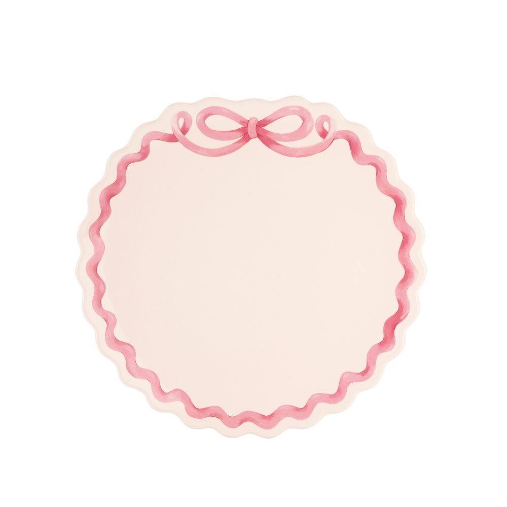 Made from stoneware, this plate is decorated with a charming painted pink wavy ribbon that runs around the scalloped edge, tied at the top with a classic bow. The simple yet elegant pink colour palette stands out against the cream background, creating a uniquely striking look. Whether you use it for your Sunday roast, English breakfast or simply a toasted sandwich, this stunning modern plate has plenty of space for many tasty delights.