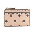 This mini Pink Spot card holder from Cath Kidston is made from pure cotton and features 4 card slots, a slip pocket and a main zipped compartment to store your loose change. Designed in our archival Pink Spot print and finely finished with gold hardware.
