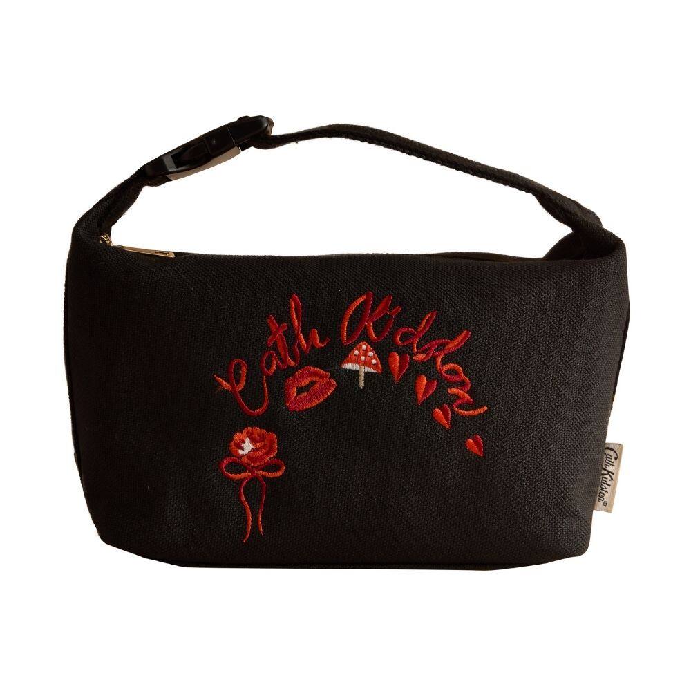 A brand new design with a nostalgic nod to their retro archive, this Cath Kidston Clip Top Travel Bag is a must have for your beauty essentials. Featuring a playful, retro-inspired print of mushrooms, hearts and a striking rose, on a timeless dark base. This bag is designed for both style and practicality. The zip fastening keeps your belongings secure and the clip top handle adds a functional and fashionable twist. Perfect for your daily carry or for your weekend escapes.