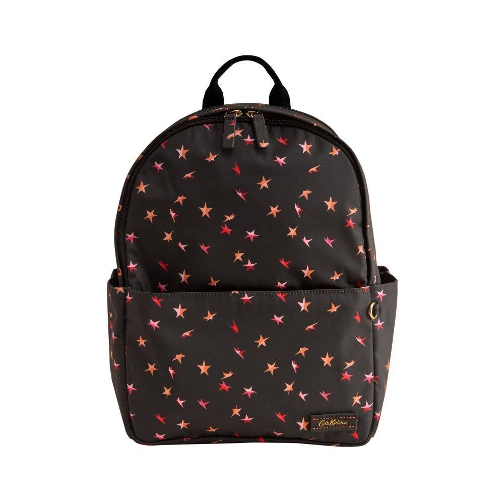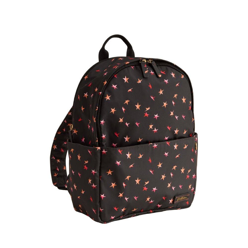 In a print where stars look to be dancing in the night sky, this Folding Star Compact Backpack by Cath Kidston will be a much-loved and trusted addition to your everyday. Made from a coated cotton on a modern and lightweight silhouette with a dropped in front zip pocket, slim side pockets (great for water bottles and umbrellas) grab handle and adjustable straps. The padded zipped back panel is perfect for laptops and the tiny D ring is ideal for small attachments. Mix and match with the rest of the range for a collection filled with celestial charm.