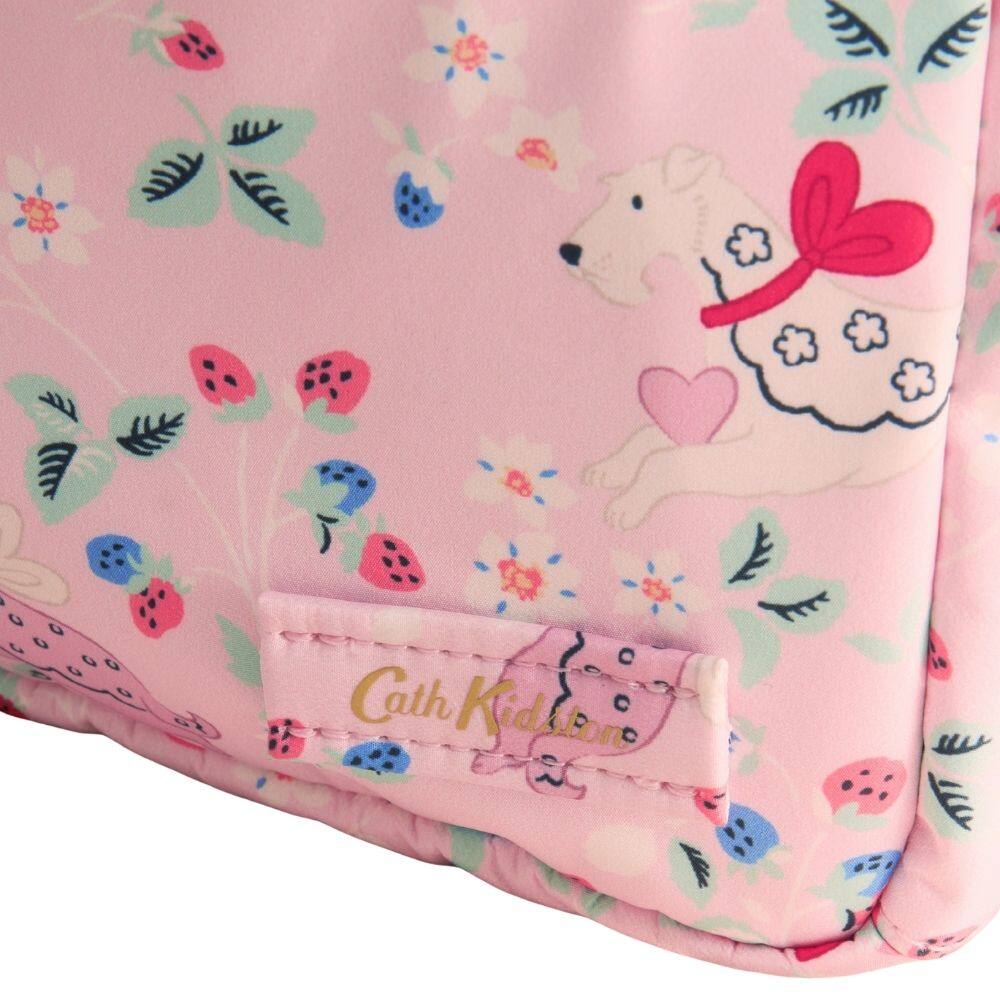 In a beautiful, rounded silhouette, this Cath Kidston Compact Backpack is a lovely choice for everyday adventures. The bag includes a secure zip around closure, a handy front pocket, adjustable straps and a useful grab handle for versatile carrying options. The whimsical design features a pattern of delightful florals, hearts and puppies with wings against a soft pink background, adding a touch of playful charm to your look. Combining practical organisation with a dreamlike aesthetic, this compact accessory is perfect for carrying your daily essentials in style.