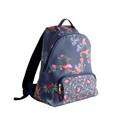 Singing the song of spring, the Navy Birds Curve Backpack by Cath Kidston reimagines the classic coated canvas backpack with a new shape and beautifully expressive print. Crafted from from a durable fabric on a rounded silhouette with double zip closure, the feather-like coral florals, magical, bright pink birds and winding branches come alive on the Navy Blue Ground. Finely finished with an inside pocket, smaller outer pocket, top handle and gold tone hardware.