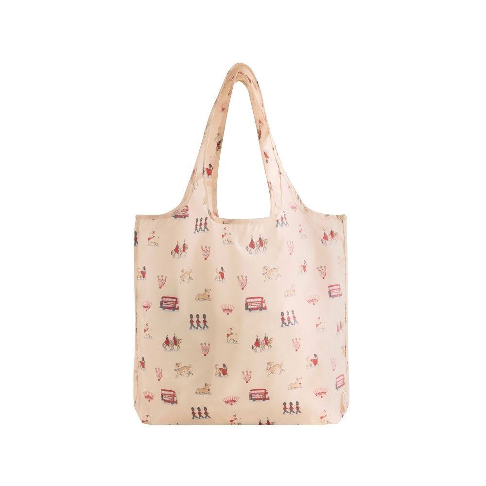 A perfect shopping trip companion, the durable Cath Kidston Foldaway Shopper Bag is beautifully lightweight, making it an essential for your daily errands. This bag features the cheerful Queenie's Ditsy London Print, which gives iconic London a classic Cath twist by showcasing beloved characters like marching guardsmen, a double-decker bus and Stanley and friends in various playful poses against a soft cream background. Designed for ultimate convenience, this shopper is crafted to fold away effortlessly to save space in your main handbag, making it super handy for any spontaneous purchase whether you are heading to the market or the high street. Combining signature Cath Kidston style with functional utility, it is finished with sturdy matching handles for comfortable carrying.