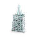 Snap-button eco shopping bag with a unique dual-purpose storage pouch design - functions both as an interior pocket and as a storage pouch for the folded shopping bag. Machine washable material for easy care. A perfect companion for your shopping trips.