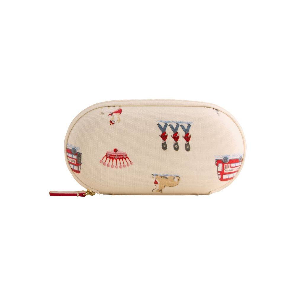 Bringing a touch of British charm to your daily essentials, the Cath Kidston Queenie's London Glasses Case is the perfect way to carry your eyewear. This case is conveniently designed with a zip-around closure to keep your eyewear safe and secure, ensuring protection for your frames or sunnies in style. The lovely design gives iconic London a classic Cath twist, featuring Cath characters illustrated with heart and personality, including red double-decker buses, royal guards and playful dogs against a clean, neutral background. Its durable construction and matching patterned zip pull make it both a practical and delightful accessory for any bag.