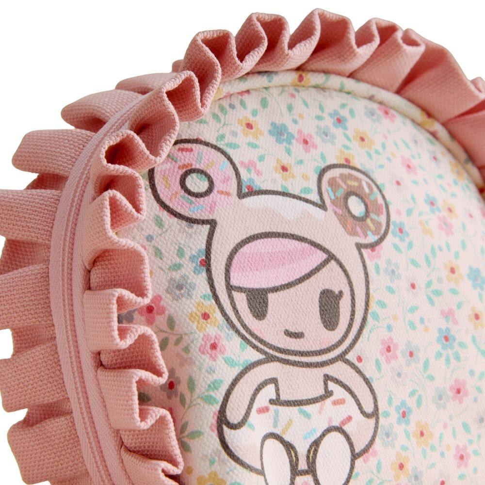 Cute and compact, the delightful Cath Kidston x Tokidoki Ditsy Placement Half Moon Coin Purse features a beautiful Cath ditsy print in soft pastel colours. Looking sweetly out from the centre is everyone's favourite character, Donutella, framed within a circular panel. The design is finished with a playful pink frill detail around the edge and a secure zip fastening. This purse is sure to bring a joyful pop of colour to your bag.