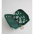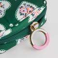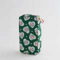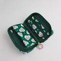 Keep your most-loved treasures and trinkets organised and neatly displayed in this Green Lace Hearts Jewellery Travel Case. With inside pockets for different pieces, the loops help keep necklaces tangle free and the zip compartment helps keep smaller items like earrings and rings neatly stored away. Coated in our archival Lace Hearts print, this travel case is finely finished with a gold hoop to attach to your bags.