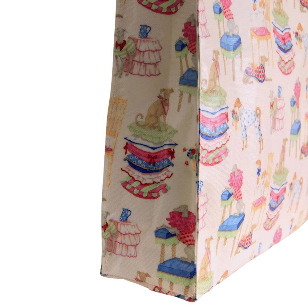 Offering a grand-scale expression, the Cath Kidston Hackney Dogs Large Bookbag features a larger silhouette designed for those who need to throw everything in while maintaining a stylish look. Bringing fun and personality to the design are the beloved Cath characters, Violet the whippet and Queenie the corgi. Looking delightfully dressed to impress, they are shown sweetly perched on cushions and chairs in a lovely, gentle print. Constructed from Cath Kidston's signature shiny coated cotton, this bookbag is both durable and easy to wipe clean, making it a highly practical accessory that delivers maximum impact with its charming design.