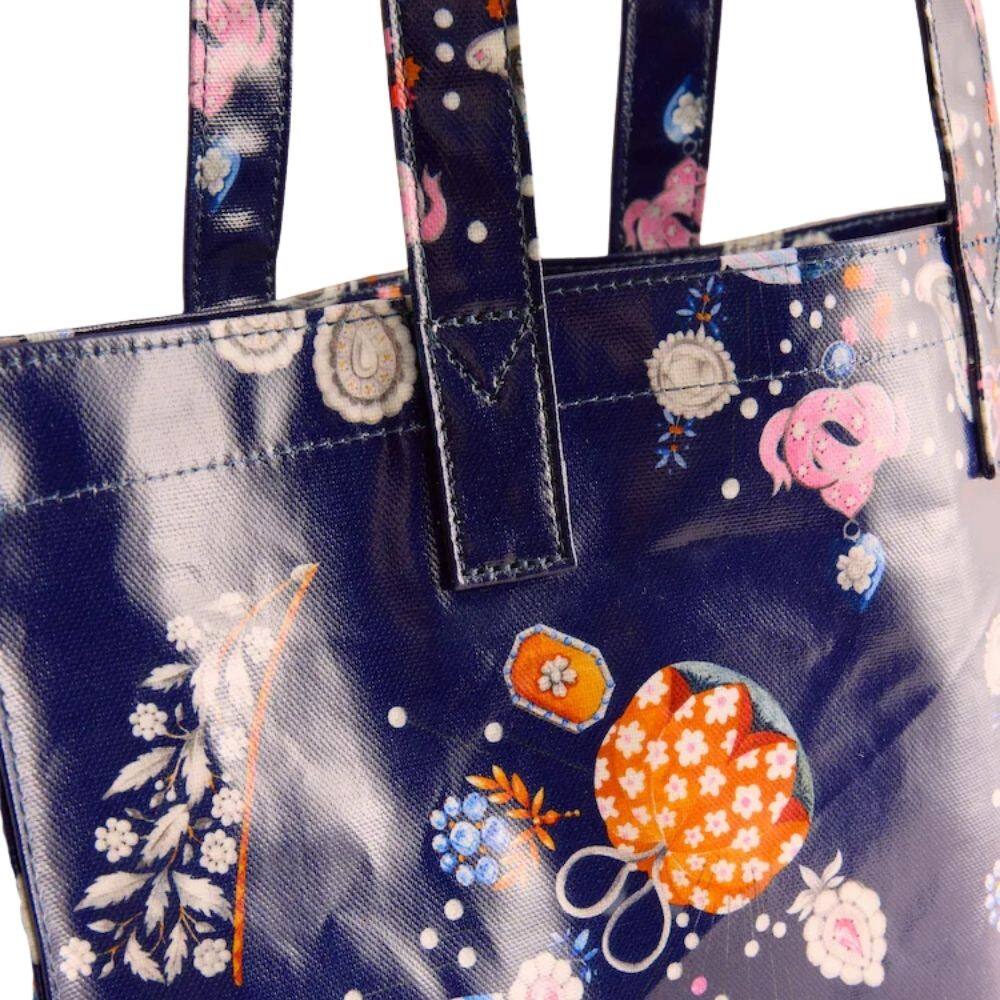 Offering a grand-scale expression, the Cath Kidston Little Treasures Large Bookbag features a larger silhouette designed for those who need to throw everything in while maintaining a stylish look. This bag features the Little Treasures print, which is filled with love and keepsakes to evoke a beautiful sense of sentimentality. The design showcases detailed illustrations of jeweled charms, pearl buttons and floral trinkets set against a deep navy base. Constructed from Cath Kidston's signature shiny coated cotton, this bookbag is both durable and easy to wipe clean, making it a highly practical accessory that delivers maximum impact with its charming design.