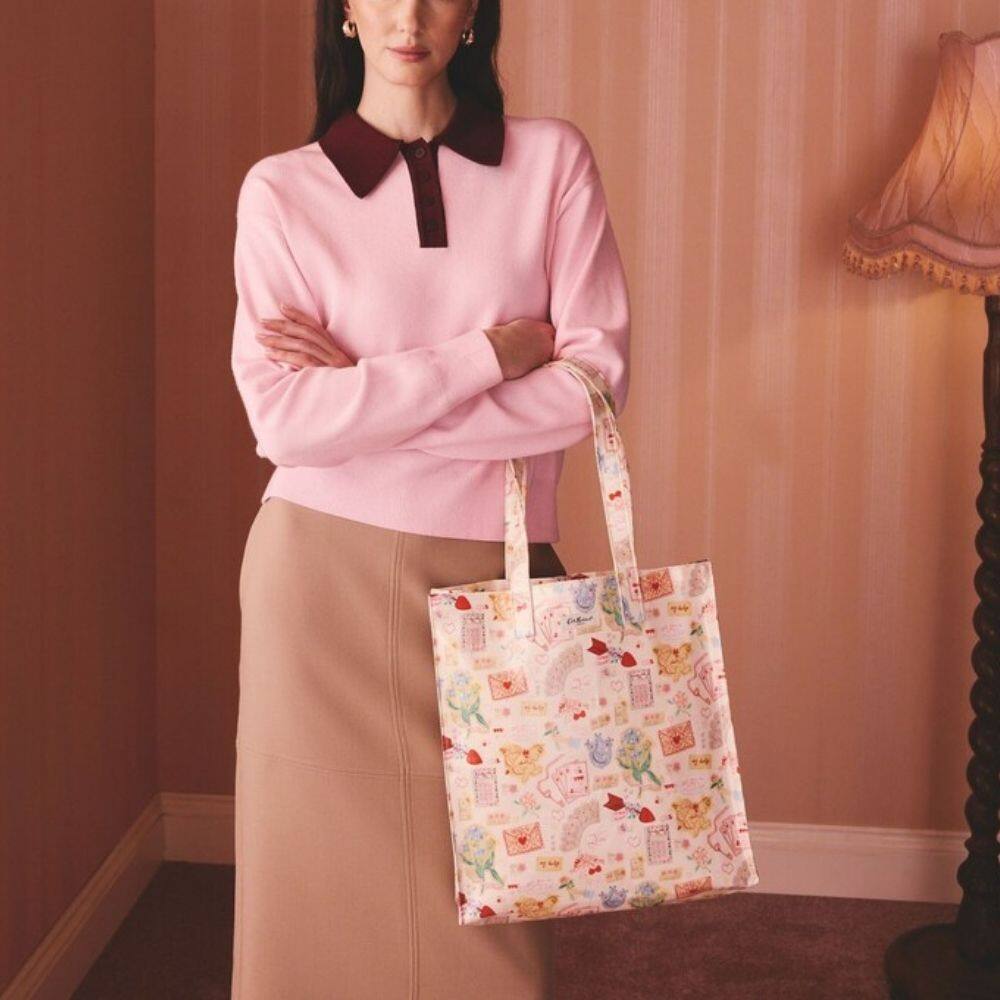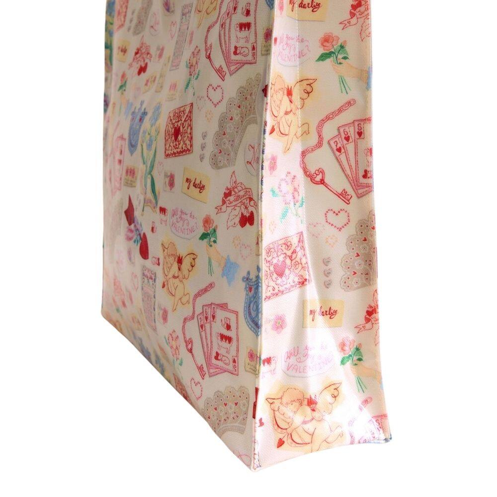 Offering a grand-scale expression, the Cath Kidston Valentine's Large Bookbag features a larger silhouette designed for those who need to throw everything in while maintaining a stylish look. This heartfelt design is inspired by a collection of lace and love notes, featuring little sentiments and memories that evoke a sense of warmth and love. The playful print showcases special treasures you keep with you, including illustrated love letters, Cupid's arrows and floral bouquets. Constructed from Cath Kidston's signature shiny coated cotton, this bookbag is both durable and easy to wipe clean, making it a highly practical accessory that delivers maximum impact with its charming design.