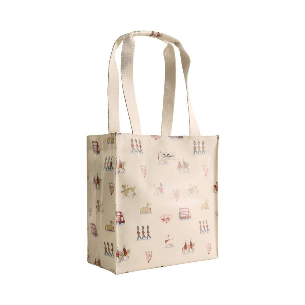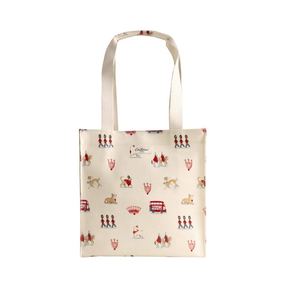 One of Cath Kidston's most-loved shapes, the Medium Bookbag is an everyday piece that combines beauty and function. This lovely design gives iconic London a classic Cath twist, featuring Cath characters illustrated with heart and personality. The playful print showcases guardsmen, horses and Stanley and friends in various poses against a clean, neutral background. Its lightweight design makes it ideal for running errands, while the signature shiny coated cotton exterior ensures it is durable and easy to care for.