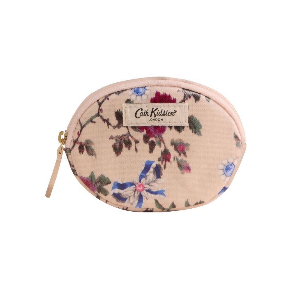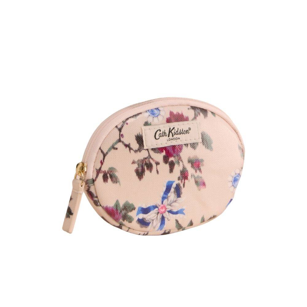 This compact Tiny Town Oval Coin Purse by Cath Kidston is a useful addition to your everyday routine. The compelling print takes intricate scenes of hand-drawn trees, cottages and mountains to recreate a Tiny Town, capturing the nostalgic charm straight out of a picture perfect storybook. Crafted from shiny coated cotton with zip closure, its oval shape easily slip into your pocket or bag and match back to the rest of your Cath collection.