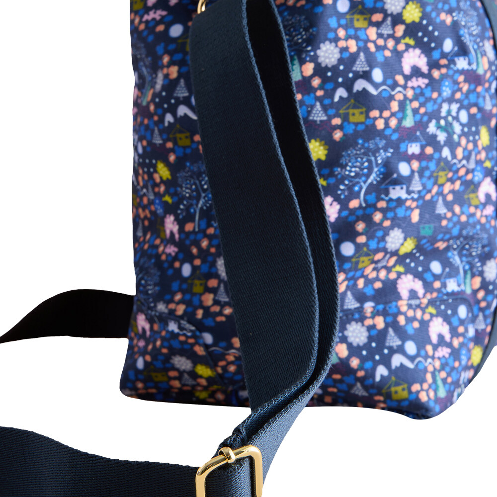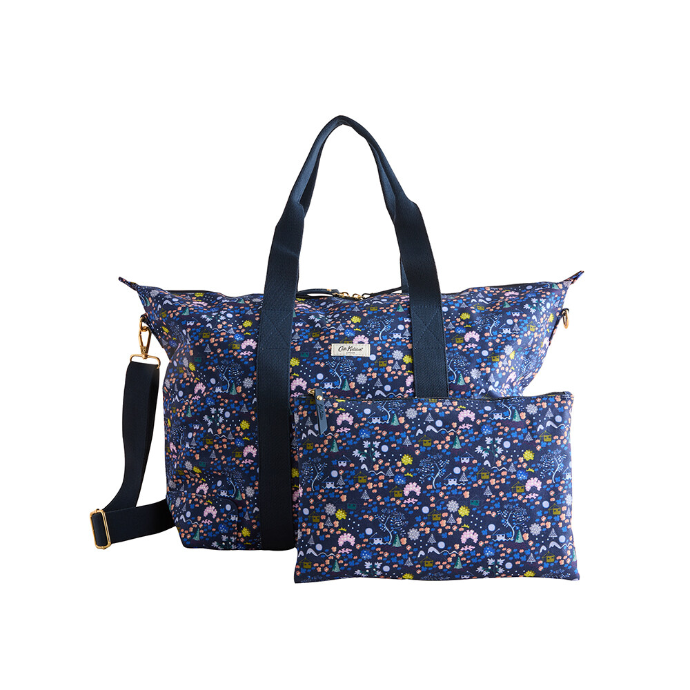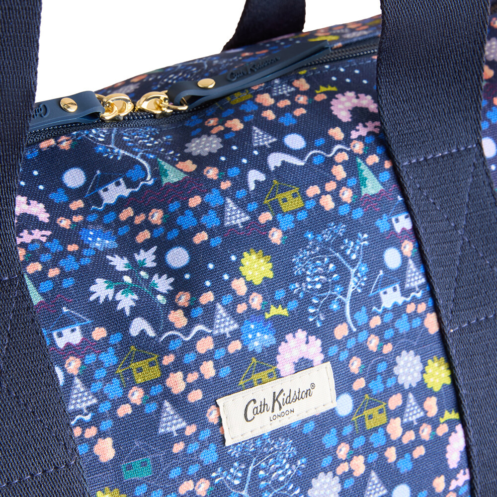 We took the much-loved weekend bag and created a light and fresh Tiny Town Overnight Weekender Bag. This compelling print takes intricate scenes of hand-drawn trees, cottages and mountains to recreate a Tiny Town, straight out of a picture perfect storybook. With web handles and a detachable cross body strap., this spacious carryall silhouette is ideal to take for your weekend getaway. Mix and match with the rest of the Cath collection for a bold and colourful collection.