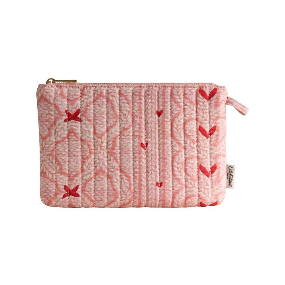 Keep your essentials organised with the Cath Kidston Pink Quilted Pouch. This charming pouch features a cosy quilted cable knit design with delicate hearts and bows detailing. The zip top ensures your belongings are secure, while the compact size is perfect for using on its own or to help keep your handbag tidy. Pair it with other matching items from the collection for a coordinated look.