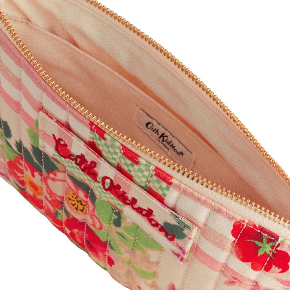 The Cath Kidston Archive Floral Check Quilted Pouch is a pretty and practical accessory designed for effortless organisation. This design is beautifully inspired by the Cath Kidston archive but for a new era, featuring bold botanicals layered over a coral and green heritage check pattern. The zip top closure ensures your belongings remain secure, making it perfect for staying organised on the go. Whether used to store make-up, stationery or daily essentials, this quilted pouch is a charming addition to any bag.