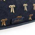 Let the beautiful Bows on our Suede Crossbody Bag welcome you into the new season. In a cosy autumnal colourway, a rich navy blue base meets with opulent gold detailing on our classic crossbody silhouette. Designed on a premium suede canvas with soft cotton lining, this stylish bag features a spacious main compartment with a zip fastening and a crossbody strap for all-day comfort.