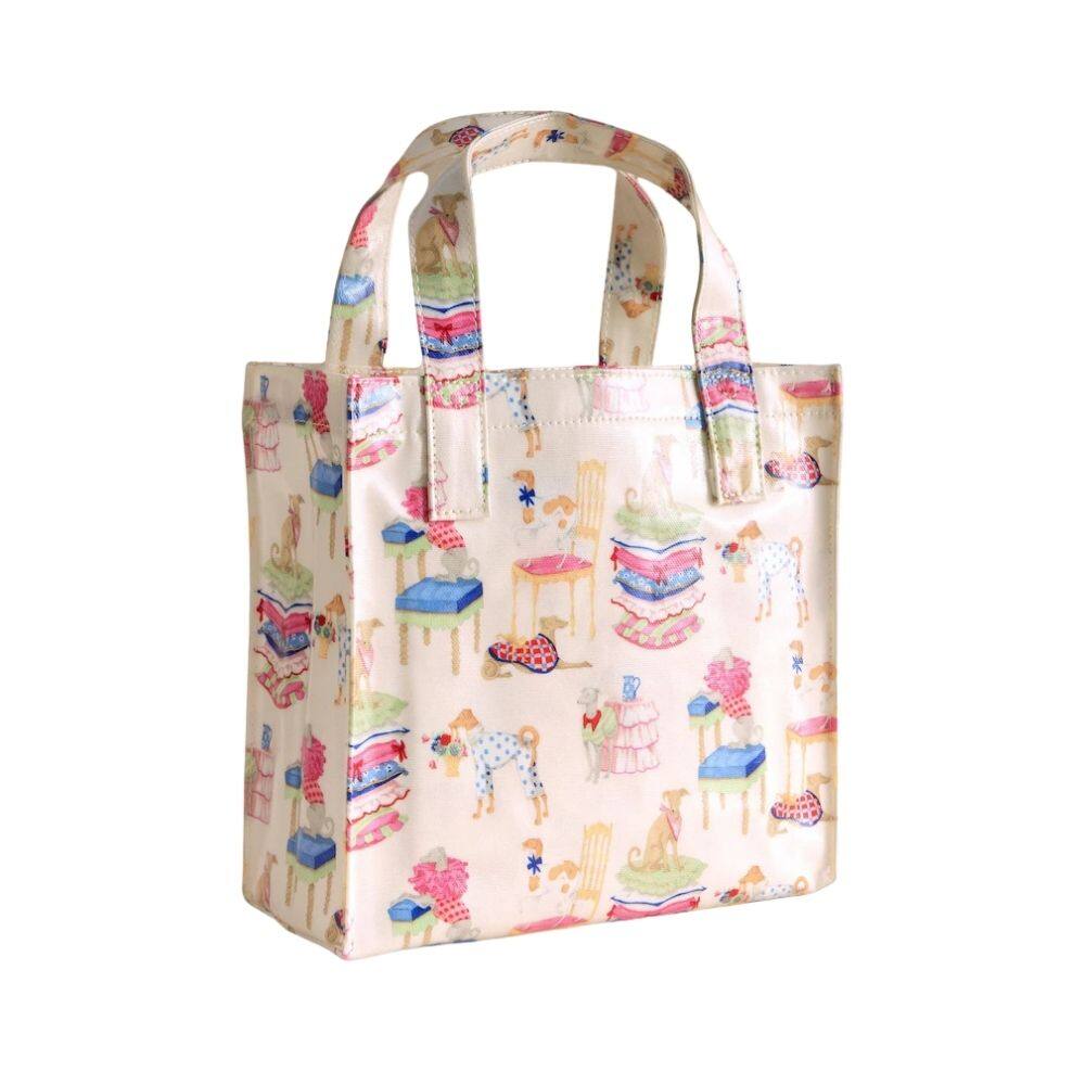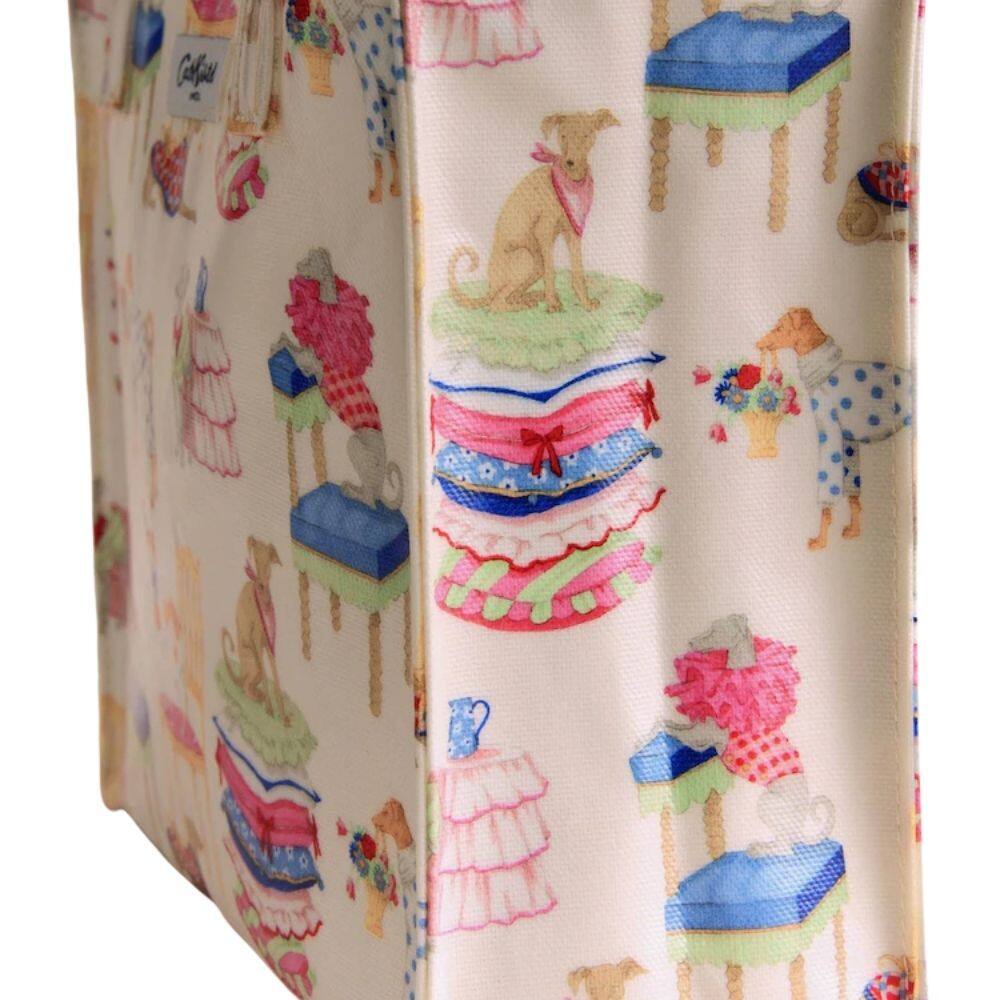 A mini, convenient version of Cath Kidston’s original bookbag silhouette, the Cath Kidston Hackney Dogs Small Bookbag is perfect for carrying your daily essentials. Bringing fun and personality to the design are the beloved Cath characters, Violet the whippet and Queenie the corgi. Looking delightfully dressed to impress, they are shown sweetly perched on cushions and chairs in a lovely, gentle print. Crafted from shiny coated cotton for durability, the bag is complete with two comfortable grab handles for easy everyday use.
