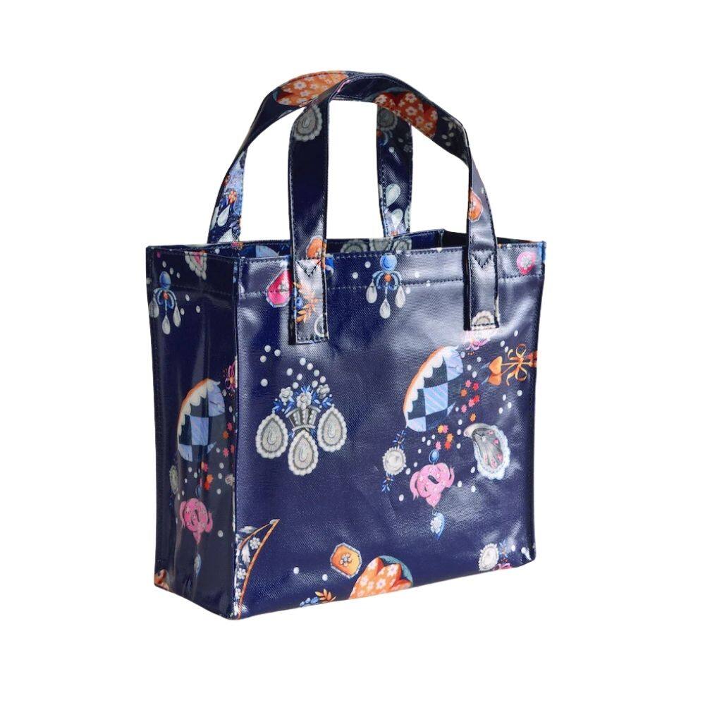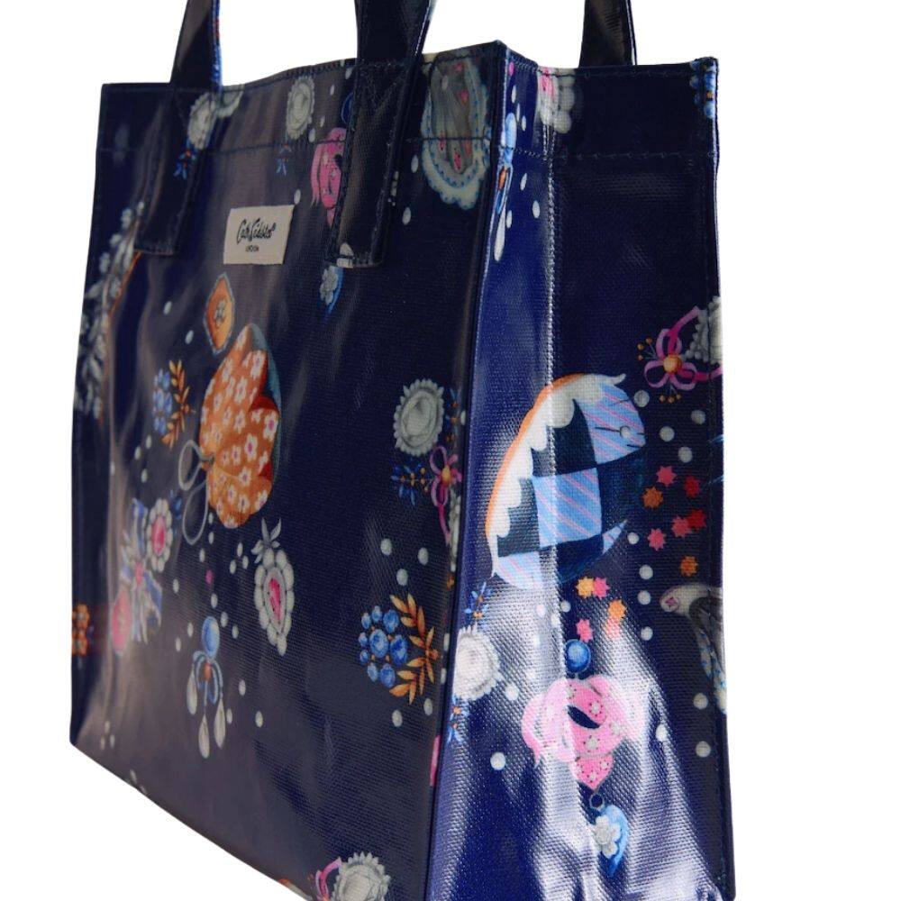 A mini, convenient version of Cath Kidston’s original bookbag silhouette, the Cath Kidston Little Treasures Small Bookbag is perfect for carrying your daily essentials. This charming accessory features the Little Treasures print, which is filled with love and keepsakes to evoke a beautiful sense of sentimentality. The design showcases detailed illustrations of jeweled charms, pearl buttons and floral trinkets set against a deep navy base. Crafted from shiny coated cotton for durability and ease of care, the bag is complete with two comfortable grab handles for effortless carrying.