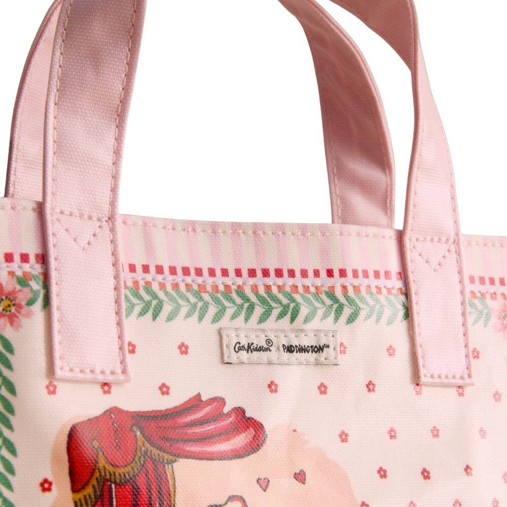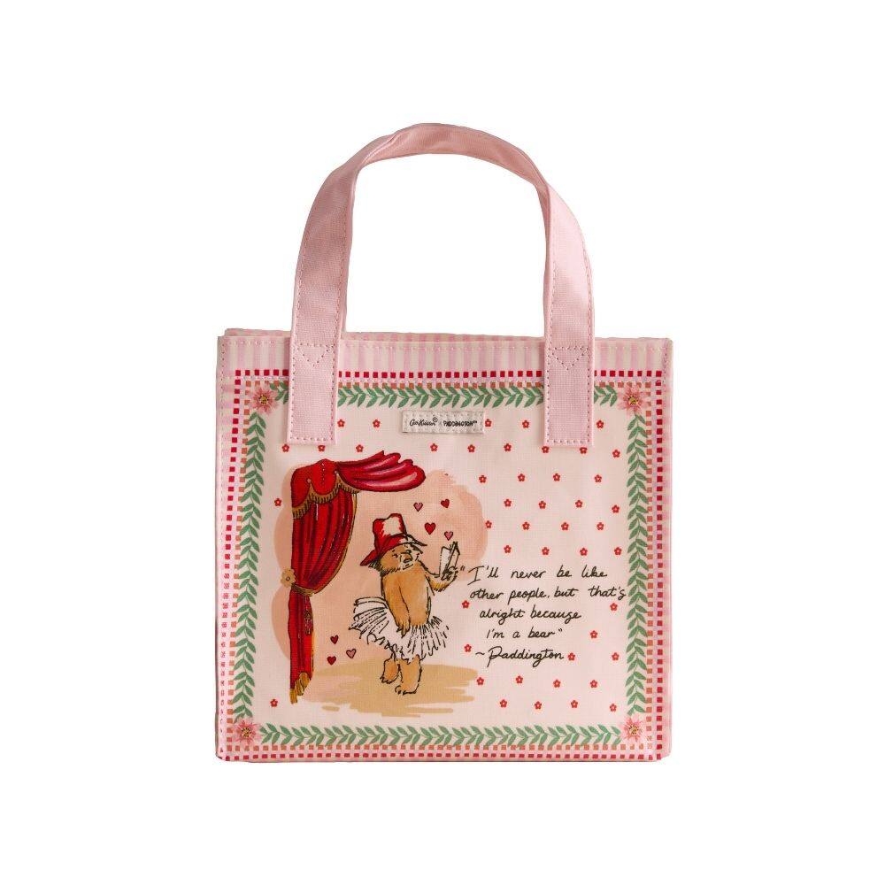 Capturing the theatrical magic of a night at the West End, the Cath Kidston x Paddington™ Small Bookbag is a delightful tribute to Britain's most beloved bear. This accessory features the vibrant Paddington Party print, a design celebrating the new theatre show with hand-painted illustrations of our favourite bear performing on stage. Framed by a delicate vine border and set against a playful pink backdrop, the artwork brings a sense of joy and wonder to your day. A charmingly compact take on an iconic silhouette, this mini, convenient version of Cath Kidston’s original bookbag silhouette is perfect for carrying your daily essentials with ease. The bag is complete with two comfortable grab handles, making it a practical and whimsical companion for any adventure, whether you're headed to the theatre or on a city stroll.
