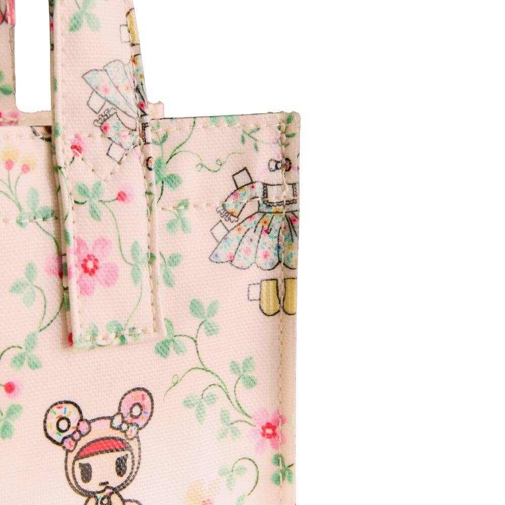 A charming piece from the Cath Kidston x Tokidoki collaboration, this small bookbag features the whimsical Paper Dresses print. It is a mini, convenient version of Cath Kidston’s original bookbag silhouette, perfect for carrying your essentials. The design showcases the Tokidoki characters, including Donutella, Chocotella and Dolce placed among a lattice of delicate pink blossoms. Their miniature Cath Kidston dresses with pretty patterns hang ready to be chosen, creating a playful and sweet scene. Crafted from shiny coated cotton, this joyful style is complete with two comfortable grab handles.