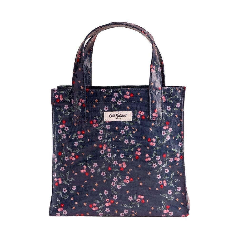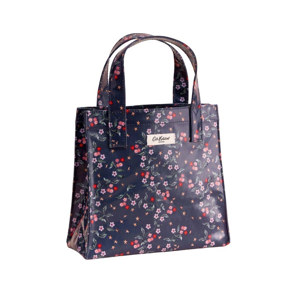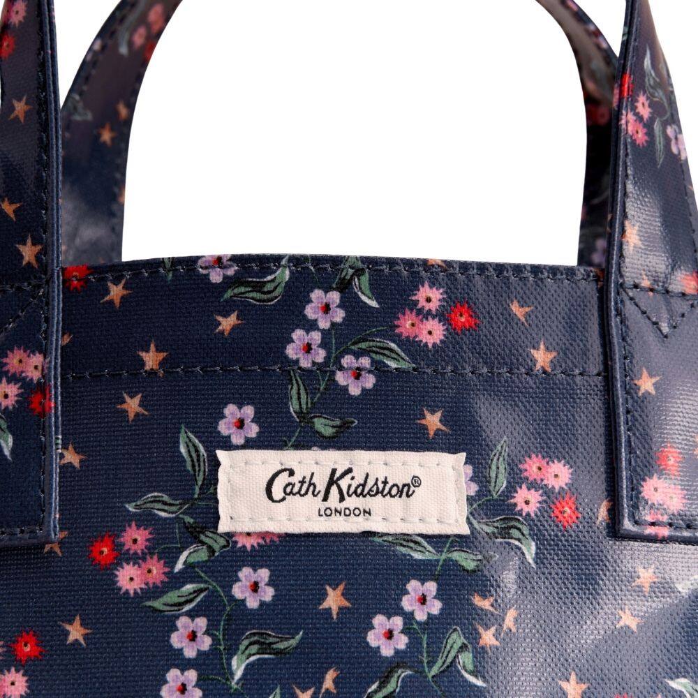 A mini version of a much-loved original, the Small Coated Bookbag from Cath Kidston hosts all the same features but in a smaller and convenient size. A signature silhouette in the range, it features a wipe clean exterior thanks to the PVC coated shiny cotton making it hassle-free to care for. Immerse yourself in the trailing star sprigs print where handpainted stars seem to be dancing across the night sky to create this charming celestial scene, the perfect addition for your new season collection.