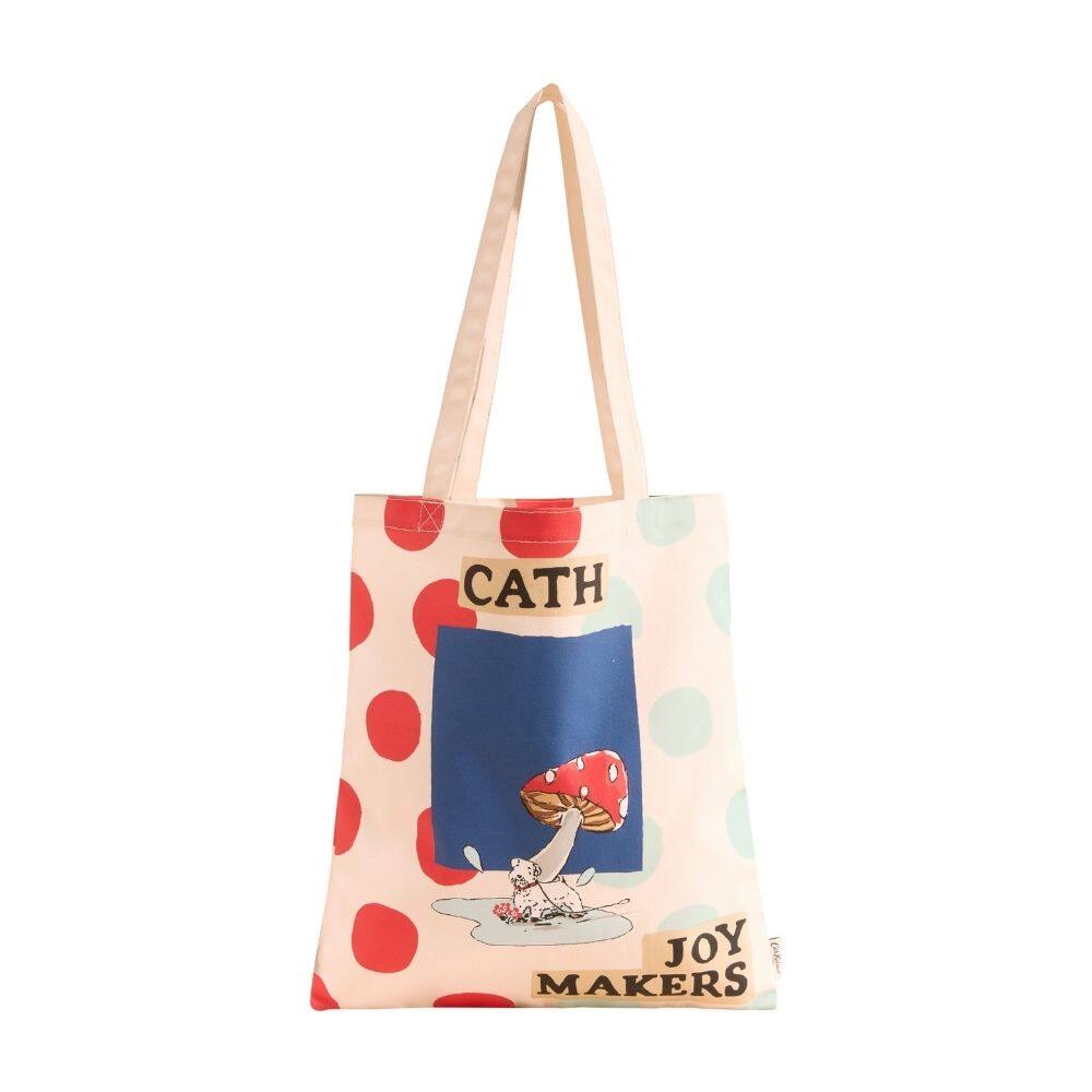 Embrace a little everyday joy with the Cath Kidston retro tote bag. This charming and nostalgic design features a playful mix of bold polka dots and one of their favourite icons, the whimsical mushroom, all artfully reimagined for a fresh and joyful look. Crafted from durable cotton, this tote is the perfect blend of playful charm and everyday practicality. With its sturdy carry handles and spacious interior, it's ideal for all your essentials, whether you're heading to the market, the library, or simply adding a bit of happiness to your day.