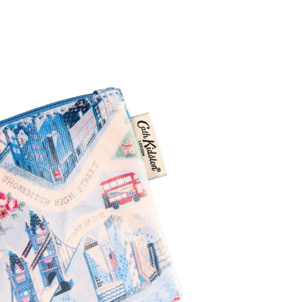 Capturing the heart of the city in a serene palette, the Cath Kidston London Town Zipper Purse is a charming and functional accessory. Crafted from durable shiny coated cotton, this compact and useful little purse is the perfect size to match to your favourite Cath bag. The print beautifully captures the heart of London and Cath's hero characters in delicate blues with subtle floral touches synonymous with the brand, featuring iconic sights like Tower Bridge and red double-decker buses. Finished with a secure zip fastening and a coordinated patterned pull, it ensures your small essentials are kept safe while you are on the move.