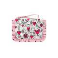 A little pouch for days out and joyful soirées, this beautiful 100% cotton Frill Wristlet Pouch is adorned with our elegant hand-painted Floral Fancy print. Framed with a ruffle trim, it has a little slip pocket for cards, and with its detachable wristlet strap you can either hang it on your wrist or use it as a clutch.