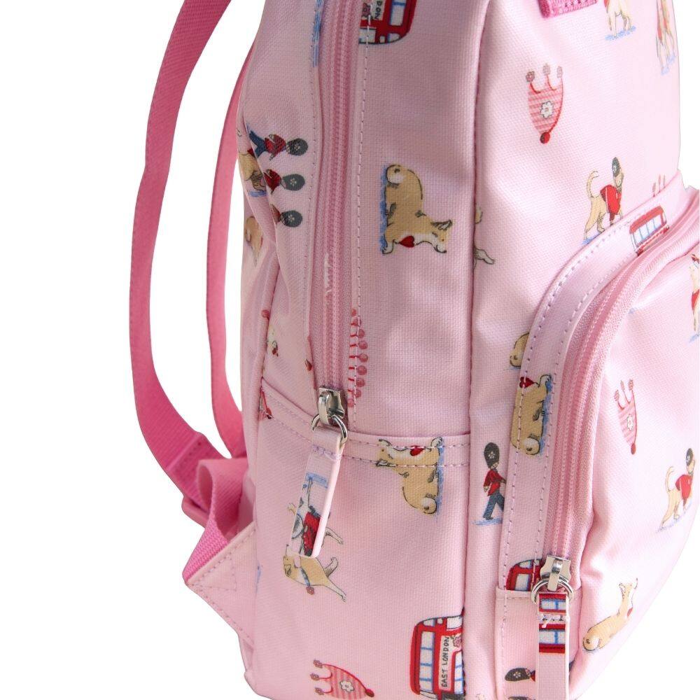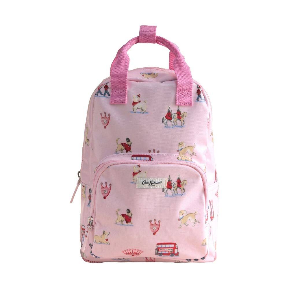 Perfect for carrying everything they need, this wonderful Cath Kidston Kids' Large Backpack features the cheerful pink Queenie's Ditsy print. Iconic London gets a classic Cath twist in this lovely design, featuring Cath characters illustrated with heart and personality, including guardsmen, horses, and Stanley and friends in various poses. The backpack comes with an internal back wall elasticated slip pocket, a webbing grab handle, a front pocket, adjustable straps and handy elastic mesh side pockets - making it as practical as it is stylish.