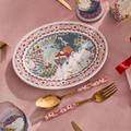 A generous surface for roasts, cheeses or dessert displays, illustrated with Christmas Journey artwork. The Cath Kidston Christmas Journey Large Oval Platter anchors a festive spread.