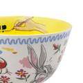 The bowl is perfect for enjoying a bowl of cereal on a lovely morning, featuring the Tunes and Blooms intricate floral design along with depictions of various classic characters. Made of durable and easily washable ceramic material, it is microwave and dishwasher safe, making it a worthwhile collectible for Looney Tunes enthusiasts.