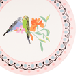 The Cath Kidston Painted Table Budgie Cork Back Pack of 4 Round Placemats are beautifully designed in hues of light pink and blue with a splash of black bordering a charming pair of budgies nestle together on a flower sprig. The cork back prevents your furniture from getting scratched, and can help absorb any moisture from spillages.