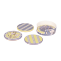 The Cath Kidston Wisteria Cork Back Pack of 4 Ceramic Coasters have a ceramic holder to keep all of the coasters together as a set for when they are not being used. They are all beautifully designed in hues of purple and yellow, with each coaster flaunting their own design for a truly unique set, while keeping the classic Cath Kidston floral design and adding some blended fauna within the pretty flowers.