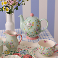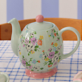 A charming tea pot in mint green and pink, adorned with floral designs, boasts a large capacity of 900ml, fulfilling the brewing needs for multiple servings at once. The sturdy design of the tea pot not only enhances durability and resistance to damage but also adds a touch of cozy vintage countryside atmosphere.
