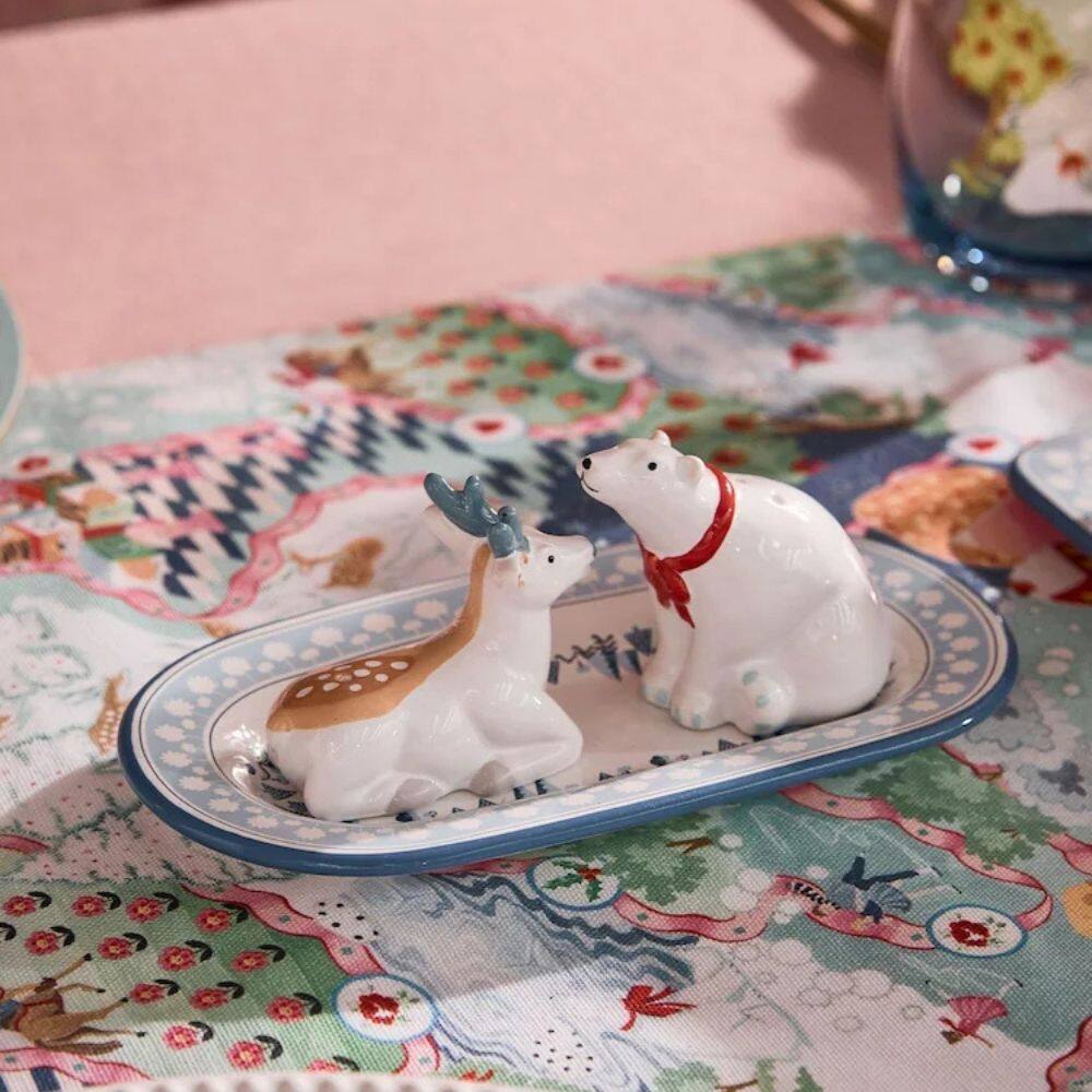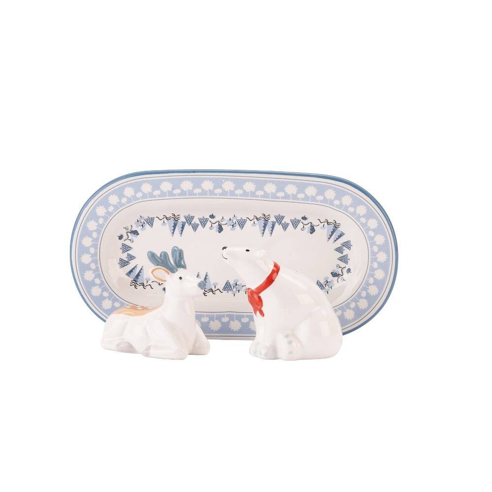Add a playful touch to your holiday table with the Polar Bear and Reindeer Salt & Pepper Shakers. Featuring hand-painted details and a matching tray, this set is beautifully boxed for gifting.